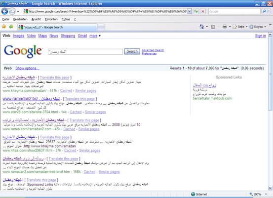 عدد الروابط الموجودة الخاصه بالموقع على محرك البحث الشهير جوجل لشبكة رمضان7060 وهذ يدل على قوة الموقع وتربعه على قمة المواقع الناطقة بالعربيه فى كل أوربا