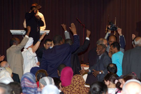 بصوت المنشد العراقى وعندليب الرافدين محمد العزاوي. ثم توالت كلمات الضيوف، فبدأ الشيخ إبراهيم الدمرداش بكلمة ألقاها باسم المجلس التنسيقي تناول فيها الواجب التضامنى الذي يجب تأديته تجاه أهلنا فى السودان.