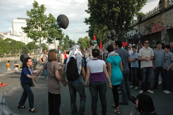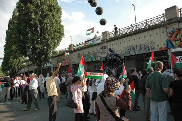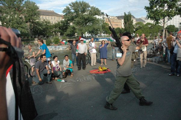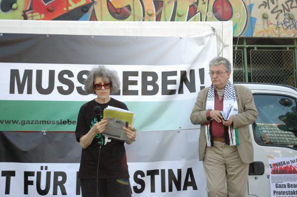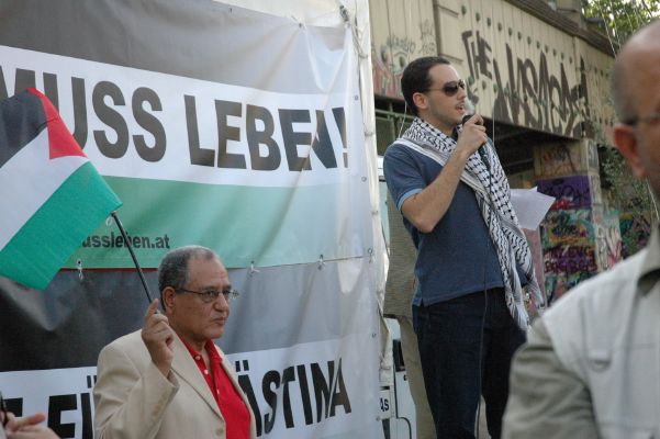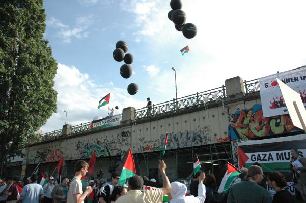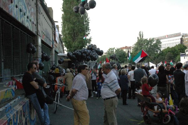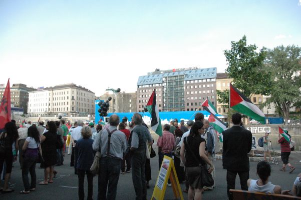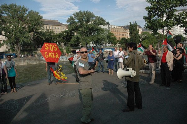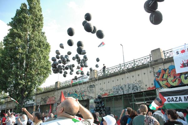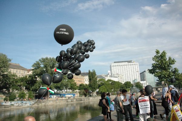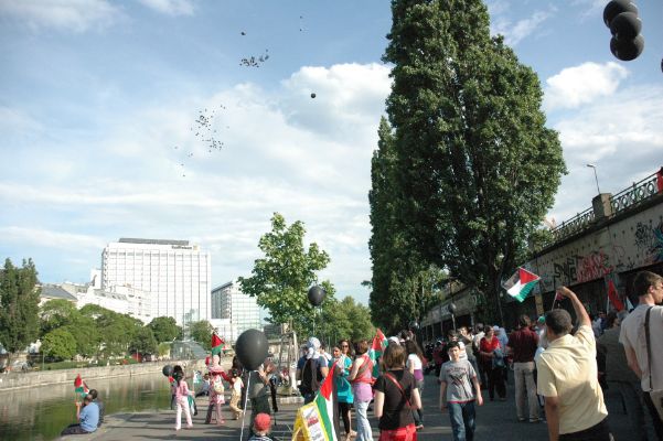 نظم الاعتصام مبادرة “دعوا غزة تعيش” وبمشاركة العديد من أعضاء الجمعيات والمنتديات العربية والإسلامية وناشطين متعاطفين مع القضية الفلسطينية. ورفع المشاركون الأعلام الفلسطينية ولافتات باللغتين العربية والألمانيه تطالب بمحاكمة قادة إسرائيل كمجرمي حرب، في حين انطلقت كتل من البالونات السوداء فوق قناة الدانوب وكتب عليها “الحرية لفلسطين”.