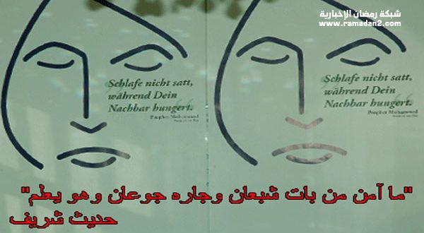 ومن المقرر أن يتم نصب المئات من اللوحات الإعلانية الكبيرة في 700 مكان بالشوارع والساحات الرئيسية بمختلف المدن النمساوية، من فيينا نحو 13 مدينه نمساويه كبرى والتي تحمل نص الحديث النبوي الشريف القائل: “ما آمن من بات شبعان وجاره جوعان وهو يعلم.”، باللغة الألمانية.