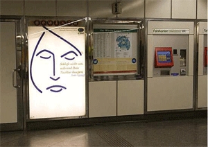 · إعلانات تلفزيونية يتم بثها في المحطات الكبرى لقطارات الأنفاق في العاصمة النمساوية فيينا.
