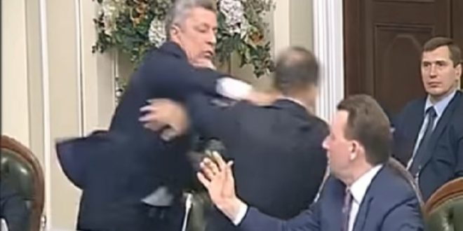 تحول مقر البرلمان الأوكراني إلى ما يشبه حلبة الملاكمة إثر اشتباك عنيف بالأيدي، أظهر خلاله زعيم كتلة المعارضة مهارات بارزة في فن القتال وفق ما علق ناشطون الذين تناقلوا مقطع فيديو ظهر فيه يوجه لكمة قوية إلى زعيم الحزب الراديكالي.