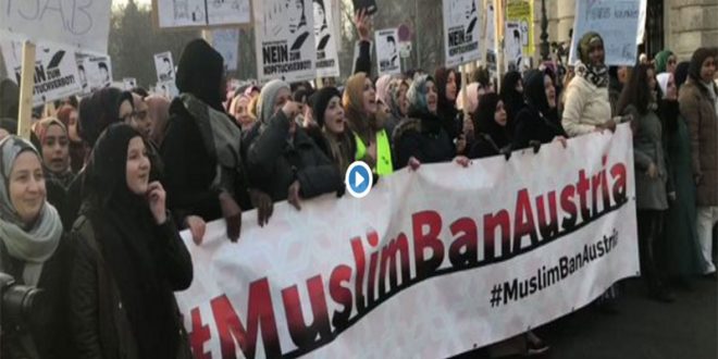 تظاهر اليوم السبت الموافق 4 من فبراير أكثر من 4 الأف من الناشطين الشباب بالعاصمة النمساوية فيينا، ضد النقاب أو البرقع وقرب إصدار قانون جديد بمنع الحجاب فى بعض الوظائف العامة على الموظفات مثل الشرطة والقضاء.