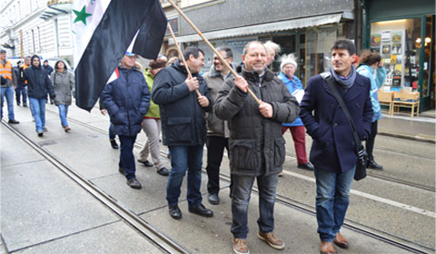 بدأت المظاهرة في الساعة الثانية من ظهر اليوم السبت 18 آذار 2017 ، وأستمرت حتى الساعة الرابعة والنصف عصراّ ، جابت شوارع العاصمة فيينا في مسيرة ٍ راجلة ، إنطلقت من الحي الخامس عشر ( BURG GASSE ) وصولا ً الى مقر البرلمان النمساوي في الحي الأول . (( RATHAUS ))