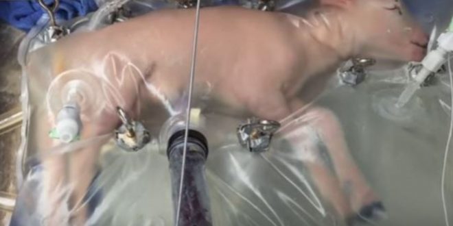فقد استحدث باحثون في مستشفى الأطفال في فيلادلفيا جهازا مؤلفا من جيب بلاستيكي مملوء بسائل يقوم على نظام يوفر الأكسجين موصول بالحبل السري، مشكلين بالتالي البيئة التي ينمو فيها الجنين قبل الولادة.