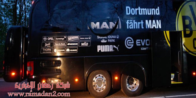 وقعت منذ قليل 3 انفجارات قرب حافلة تقل فريق بروسيا دورتموند الألماني لكرة القدم أثناء توجهه لخوض مباراة في منافسات دوري أبطال أوروبا في مدينة دورتموند الألمانية