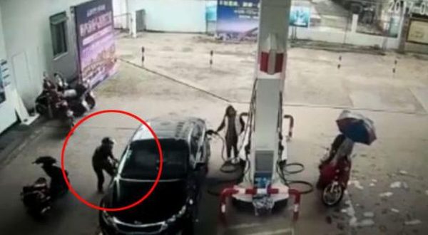 سجلت كاميرات المراقبة في محطة وقود مقطع فيديو لسارق لقي عقاباً فورياً على جريمته من حيث لا يحتسب.