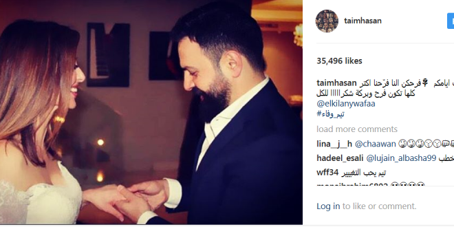 ونشر تيم حسن الخبر عبر حسابه الرسمي على موقع Instagram بطريقة مختلفة، إذ نشر مقطع فيديو من نشرة أخبار أذاعت الخبر. وعلق كاتبا: “مساؤكم حب وبركة، باركوا لنا وعقبال كل حبايبنا”.