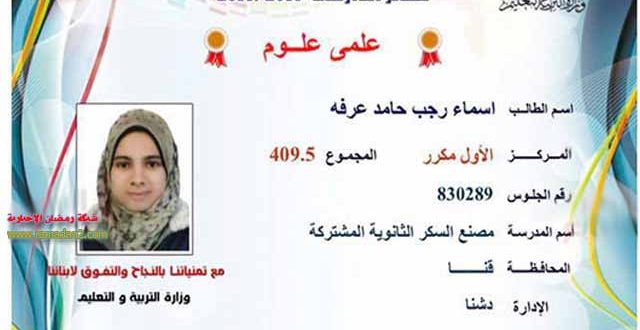 أسماء رجب حامد عرفة الأول مكرر 409 ونصف درجة