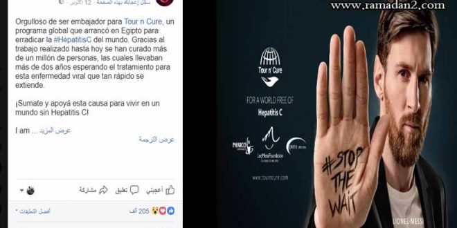 ويأتي هذا في إطار دعم نجم البارسا للبرنامج العلاجي المصري لفيروس «سي