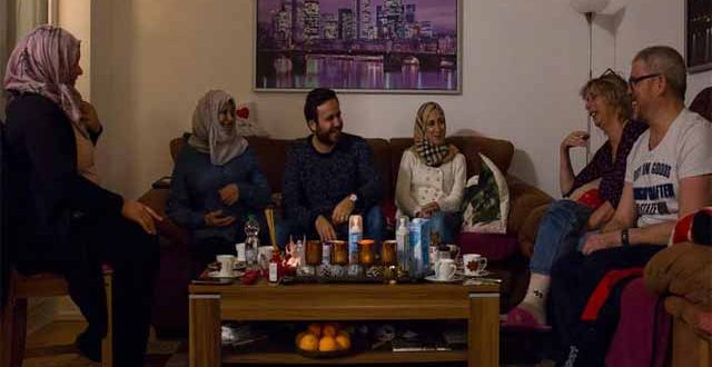 فمثلاّ عائلة غولدشميت الألمانية تستقبل عائلة الحسن السورية في ليلة عيد الميلاد في كولونيا إلى مائدة مزينة بأضواء الشموع، ومزخرفة بأنواع من الحلوى الألمانية، جلست صباح الحسن مع ابنتها رنا وابنها كرم وزوجة الابن، يتشاركون ليلة عيد الميلاد مع إيستر غولدشميت وزوجها، اللذين يساعدان الأسرة السورية في رحلتها للاندماج بالمجتمع الألماني، بعد سنتين من رحلة اللجوء “الشاقة”، التي قضتها على طريق البلقان.