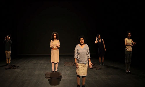 توثق النساء على خشبة المسرح ما تعرضن له من وحشية وإهانة أثناء تواجدهن في المعتقل.
