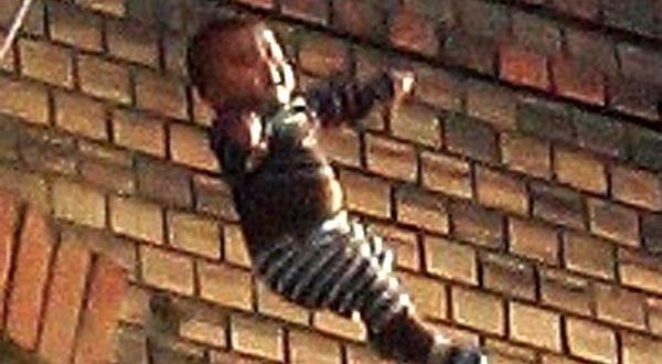 فى أسيوط : بالفيديو أمين شرطة يتلقف طفلاً سقط من الطابق الرابع