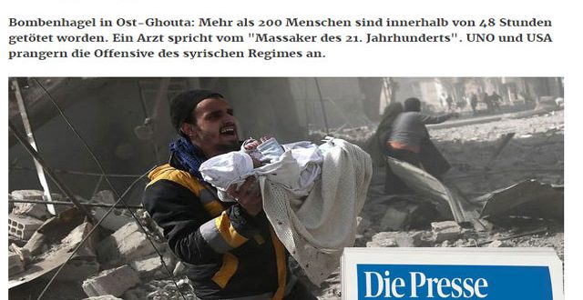 نشرت جريدة “الدي بريسه” انمساوية على موقعها الألكترونى تقرير عبارة عن مجموعة من الشهادات من الأطباء و جمعيات الإغاثة في “الغوطة الشرقية” السورية، والتي اختصرها أحد الأطباء في قوله “هنا الجحيم بعينه”.