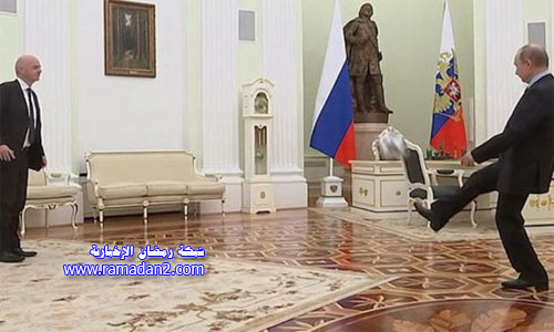 شاهدبالفيديو بوتين يستعرض مهارتة الكروية مع رئيس الفيفا