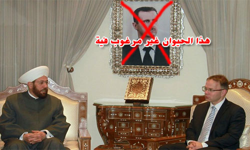 تغريدة لأحد أعضاء الحزب مرفقة بصورة اجتماع للوفد مع مفتي سوريا، أحمد بدر الدين حسون، في دمشق