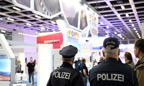 تدخلت الشرطة الألمانية لحماية الجناح الإسرائيلي ، بسبب توجه رجال حراسة من أصول عربية مرتدين أوشحة فلسطينية إلى الجناح الإسرائيلي في بورصة برلين الدولية للسياحة، مرددين هتاف “فلسطين حرة”.