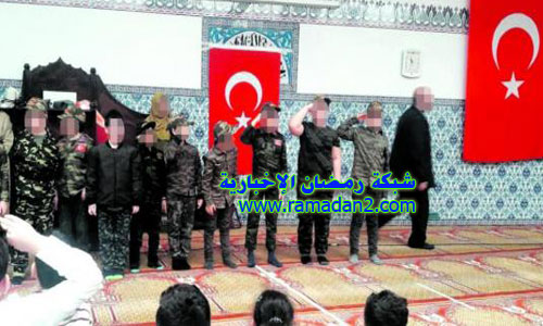 الأولاد بالزي العسكري والفتيات بالحجاب يمثلون معركة من معارك الحرب العالمية الأولي التي انتصرت فيها الدولة العثمانية المسلمة على الغرب المسيحي . حدث ذلك في منتصف شهر مارس الماضي في أحدي المساجد التابعة لجمعية ATIB التركية في العاصمة النمساوية فيينا وتم عرض الصور الخاصة بهذا الحدث على صفحة التواصل الإجتماعي ” فيسبوك ” . ويظهر في الصور أن الأولاد مازال منهم من هو في سن المرحلة الإبتدائية . كما تم التعليق تحت الصور على أنها احتفالية ” بالشهداء ” .