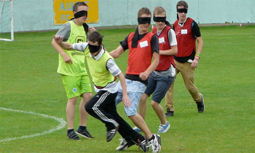 كرة القدم "العمياء" هي جزء من كرة الصالات، حيث يبدو كل اللاعبين في الملعب "مكفوفين"