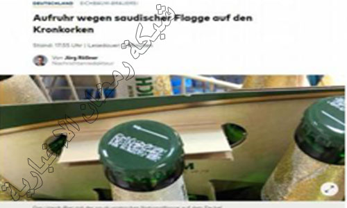 وقال مصنع أيشباوم لإنتاج البيرة في مانهايم إن المسلمين انتقدوا طبع العلم السعودي الذي يحمل نص شهادة دينية مرتبطا بشراب كحولي.