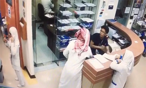 وأظهرت كاميرا المراقبة التي التقطت الاعتداء الوحشي، رجلاً يدخل ردهة المستشفى ويتوجه إلى أحد الموظفين ويوجه له طعنة بسلاح أبيض لم يظهر جلياً على الكاميرا، عدة مرات، وقد بدا الدم على الأرض تحت الموظف الذي تم إنقاذه من بين يدي المعتدي.