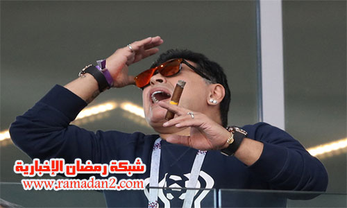 ظهر مارادونا وهو يدخن “السيجار” فى مدرجات ملعب “أتكريت أرينا” ليخترق القواعد التى وضعها الاتحاد الدولى لكرة القدم “فيفا” بعدم التدخين فى مدرجات ملاعب روسيا خلال منافسات كأس العالم.
