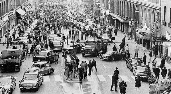 قبل نصف قرن شهدت السويد فوضى عارمة في طرقاتها تسببت في عدّة حوادث مروريّة؛ فقد كان الثالث من سبتمبر 1967 هو اليوم الذي بدأت فيه القيادة من الجانب الأيمن من الطريق بعد عشرات السنوات من القيادة من الجانب الأيسر، ورغم أنّ الحكومة وضعت مخطّطًا دقيقًا لكي يتمّ هذا الانتقال بأكبر سلاسة ممكنة، إلا أنّ تفادي حدوث بعض الاصطدامات كان مستحيلًا.