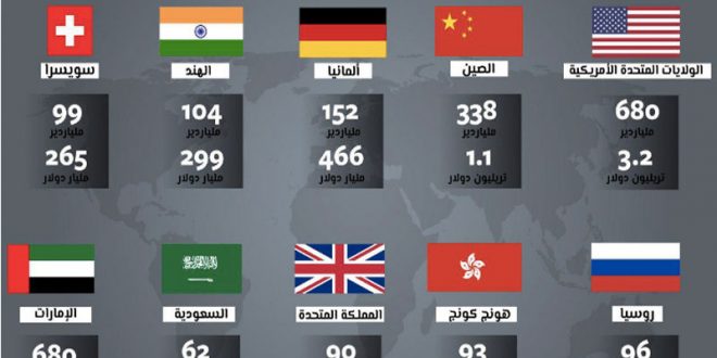 فيما حلّت ألمانيا ثالثًا بأقل من نصف عدد مليارديرات الصين وإجمالي ثرواتهم؛ إذ يعيش في ألمانيا 152 ملياردير يبلغ إجمالي ثرواتهم 466 مليار دولار، وكان من اللافت تفوق كل من روسيا وهونج كونج في إجمالي ثروات المليارديرات، بالرغم من تفوق كل من الهند وسويسرا عليهما في عدد المليارديرات، وفيما يلي إنفوجرافيك يُظهر أكثر 10 بلدان يسكنها مليارديرات في العالم، مع إدراج عدد المليارديرات في كل دولة، وإجمالي ثرواتهم.