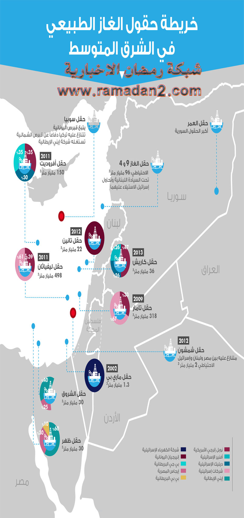 دول عدة تقف اليوم على خطوط المواجهة ضمن مجموعتين، تربط المصالح السياسية بين أطراف كل منهما. في المجموعة الأولى مصر وإسرائيل وقبرص واليونان والأردن والسلطة الفلسطينية، وفي المجموعة الثانية دول مستثناة من الكعكة، لكنها ترفض ذلك، هي تركيا وقبرص الشمالية وسوريا ولبنان، ومن خلفها لاعبون إقليميون آخرون، هما روسيا وإيران.