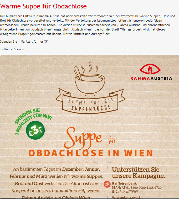 توزع جمعية رحمة الخيرية في العاصمة النمساوية فيينا، طعاما ساخنا على المشردين والمحتاجين في الشوارع، عدة أيام في الأسبوع.