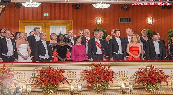 حضر الحفل أكثر من خمسة آلاف ضيفا حسبما نشرت جريدة دي بريسه النمساويه Die Presse على رأسهم رئيس الجمهورية النمساوي البروفيسور أكسندر فان دير بللن ، وأعضاء الحكومة بقيادة المستشار النمساوى وأعضاء الحكومة كاملة، ومعهم عمدة فيينا الجديد الدكتور ميخائيل لودفج متوشحين بالعلم النمساوى ويرتدون الاسموكن الأسود الزي التقليدي لحفل أوبرا فيينا، وتزينهم النياشين والميداليات ، وبصحبة قريناتهم اللاتي تبارين في خطف أضواء عدسات التليفزيون باستعراض فساتين السهرة والحلي والأحجار الكريمة .