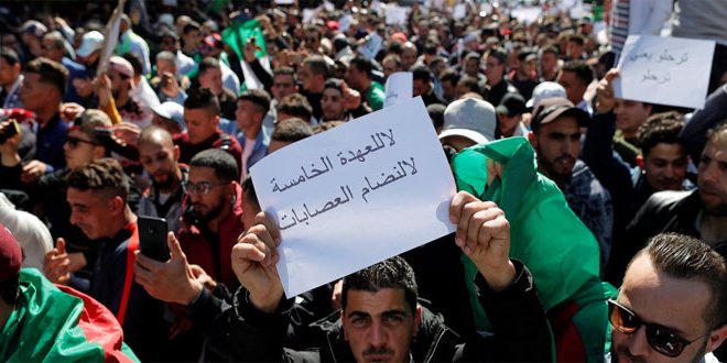 أمَّا في الجزائر، فقد تفاقمت الاحتجاجات في جميع أنحاء البلاد على مرِّ الأسبوعين الماضيين، مُطالبةً الرئيس عبدالعزيز بوتفليقة بعدم الترشُّح لولايةٍ رئاسية خامسة في الانتخابات الرئاسية المقرر إجراؤها في أبريل/نيسان المقبل. يُذكَر أنَّ بوتفليقة بلغ عامه الثاني والثمانين في نهاية الأسبوع الماضي، ويشغل منصب الرئاسة منذ عام 1999. وقد أصيب بجلطةٍ دماغية في عام 2013 جعلته يستخدم كرسياً متحركاً، ولم يتحدث على الملأ منذ سبع سنوات.