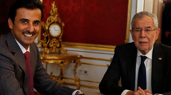 وظهر خلال الفيديو الرئيس النمساوي وهو يقدم هدية كروية رمزية للشيخ تميم، على هامش مباحثات الزعيمين في العاصمة فيينا، التي يزورها أمير قطر حاليا.