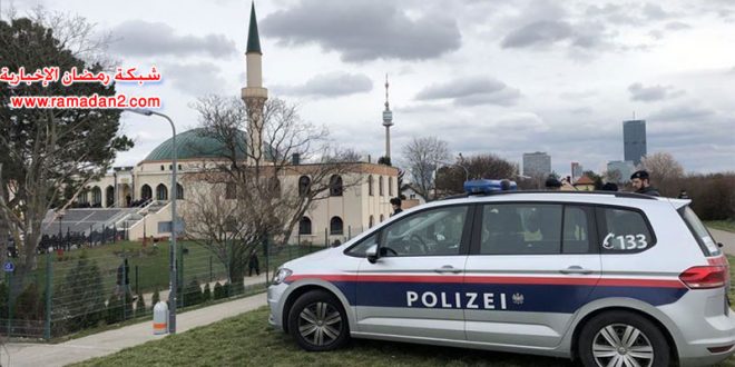 عقب مجزرة نيوزيلندا تعزيزات أمنية حول المساجد فى فيينا حيث ألتقطت عدسة شبكة رمضان الإخبارية اليوم الخميس ، صور للتدابير الأمنية في محيط المركز الإسلامى فى فيينا، حيث شوهد رجال من الشرطة النمساوية مدججين بأسلحة ثقيلة ويرتدون سترات واقية من الرصاص يقفون أمام وعلى جانب المركز الإسلامى خلال أوقات الصلاة الخمس المفروضة .