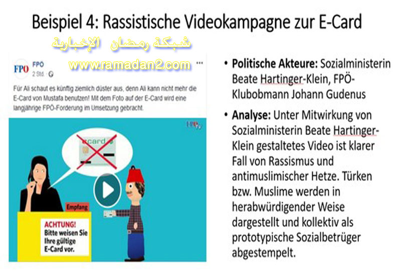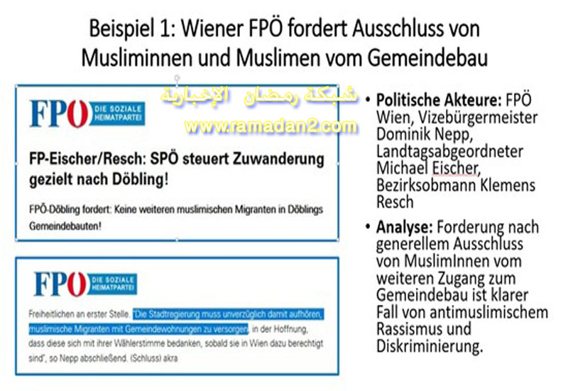 – دراسة أجرتها منظمة مجتمع مدني معادية للعنصرية توصلت إلى أن نسب معاداة الإسلام في السياسة النمساوية شهدت زيادة بشكل كبير.