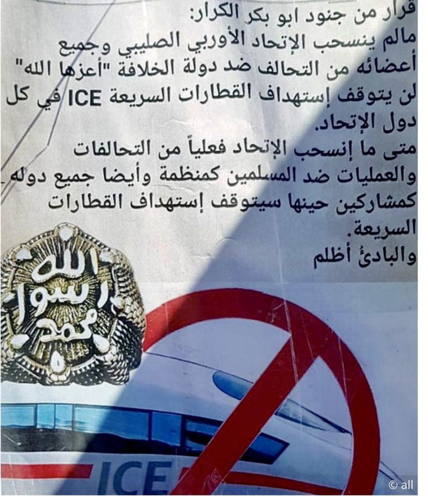 وبعدها بشهرين، حاول المشتبه به تنفيذ هجوم مماثل على خط السكك الحديدية في منطقة كارلسهورت في برلين، وترك وراءه علم “داعش” وخطاب تهديد؛ لكن محاولته باءت بالفشل.