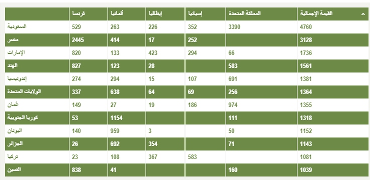 2-كشفت دراسة أجراها معهد ستوكهولم الدولي لأبحاث السلام (سيبري SIPRI) عن وجود السعودية ومصر والإمارات العربية المتحدة ضمن قائمة الدول الأكثر استيراداً للأسلحة في العالم بين أعوام 2008-2012 و2013-2017.وتصدرت الهند ترتيب الدول الأكثر استيراداً للأسلحة الثقيلة تبعتها السعودية بالمركز الثاني ثم مصر والإمارات بالمركزين الثالث والرابع.كذلك حلَت قطر في المرتبة العشرين للدول الأكثر استيراداً للأسلحة.وازداد استيراد الأسلحة بالشرق الأوسط بنسبة 103% خلال العشر سنوات الماضية، ليشكل 32% من حجم الأسلحة المستوردة على مستوى العالم.