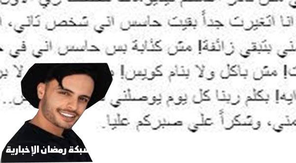وأضاف: “صحتي اتدهورت! مش باكل ولا بنام كويس! مش بكلم حد ولا برد! مش قادر أفهم حصلي إيه! بكلم ربنا كل يوم يوصلني لحل بس مفيش، أتمنى محدش يبقي زعلان مني، وشكرا على صبركم عليا”.
