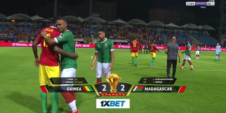 انتهت أحداث اللقاء المثير الذي جمع منتخبي غينيا ومدغشقر بالتعادل 2-2، ضمن مواجهات الجولة الأولى للمجموعة الثانية، لنهائيات كأس الأمم الإفريقية 2019.