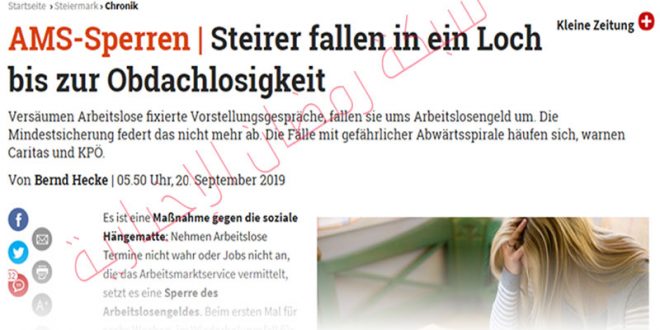 وحسبما جاء في تقرير جمعية كريتاس النمساوية الخيرية والحزب الشيوعى النمساوى أن مكتب العمل الموجود في مقاطعة إشتاير مارك قطع نقود البطالة 4874 شخص عاطل عن العمل خلال سنة واحدة ، ليرتفع هذا العدد في السنة التي بعدها إلى 6289 شخص