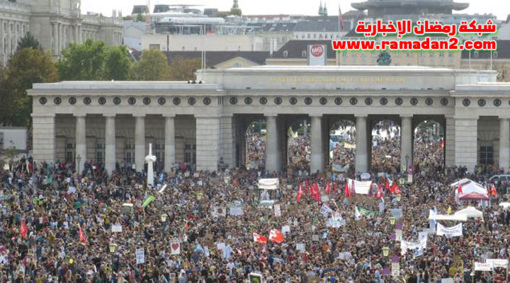 وقالت مصادر في الشرطة النمساوية إن حوالي 30 ألف شخص خرجوا إلى الشوارع في العاصمة فيينا، ونحو 16 ألفا آخرين في مدينة انسبروك، ونحو 3 آلاف في مدينة جراتس، و2500 في مدينة لينز.