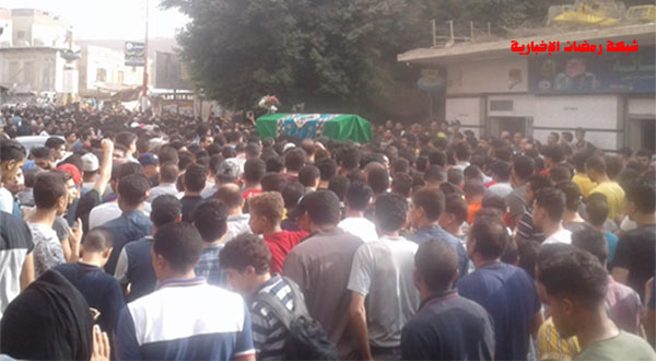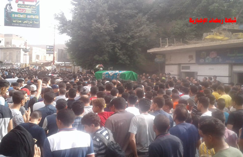 وخرجت الجنازة من مسجد لمعرفة بمدينة تلا بمحافظة المنوفية، بحضور المئات من أهالي المدينة وسط ترديد عبارات “في الجنة يا شهيد” ، “حقك مش هيروح ياشهيد”.