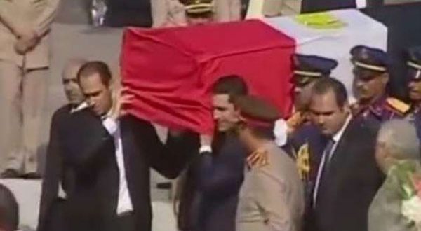 وبعد انتهاء الجنازة حملت طائرة عسكرية، جثمان الرئيس الراحل ونقلته إلى مقابر الأسرة في كلية البنات بمصر الجديدة، ليواري جثمانه الثرى، وسط حضور أمني مكثف.