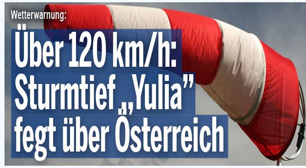 أجتاحت العاصفة “يوليا” النمسا، اليوم، والتي وصلت سرعة الرياح فيها إلى 122 كم في الساعة.