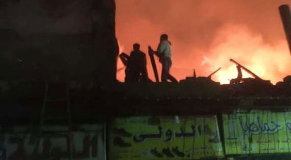 شب حريق هائل في مسجد أثري وعشرات المحلات والمنازل بمنطقة الدرب الأحمر بالقاهرة.
