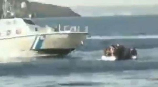 بالفيديو.. جنود يونانيون يحاولون إغراق مراكب السوريين لمنعهم من الهجرة لأوروب