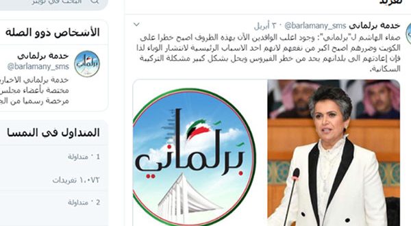 فقد دعت النائبة المثيرة للجدل في الكويت، أمس الجمعة، الحكومة إلى اتخاذ قرار عاجل وترحيل الوافدين في ظل تفشي فيروس كورونا.