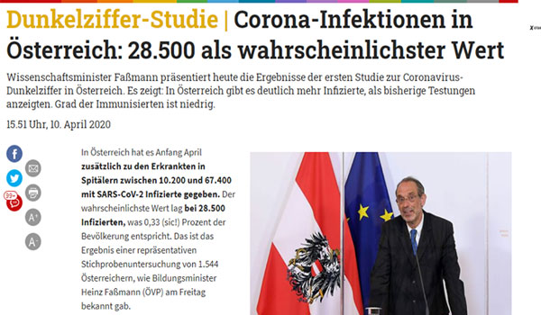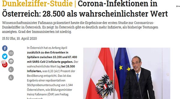 أشارت دراسة عن حالات الإصابة بفيروس كورونا المستجد التي لم يتم الإبلاغ عنها في النمسا، إلى وجود عدد من المصابين أكثر بكثير مما تظهره الإحصاءات الرسمية.