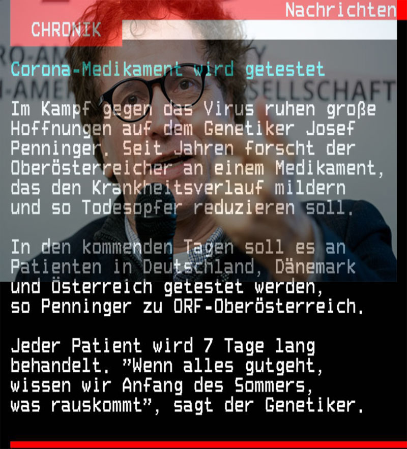 ووفقا للقاء تلفزيونى أجرى معه في مقاطعة النمسا العليا قال البروفسير جوزيف أعتقد أن النتائج سوف تكون واعدة في علاج مرضى فيروس كورونا الذين هم في المراحل الحرجة من العدوى طبقا لما أكده الباحثين الذين يجرون التجارب المعملية على الدواء.