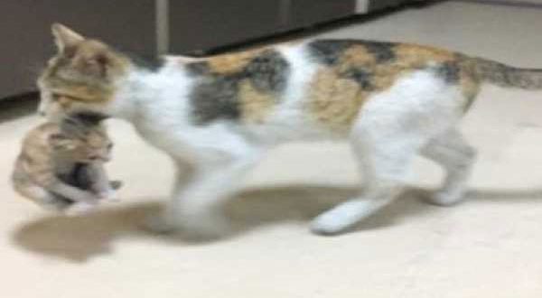 تفاجأ الأطباء في أحد مستشفيات تركيا بقطة تحمل وليدتها الصغيرة من عنقها، وتحضرها إلى المستشفى، حيث أسقطتها تحت قدمي طبيب في غرفة العلاج